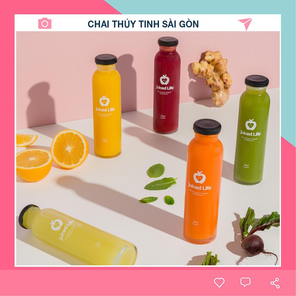 Chai thủy tinh tròn cao nắp thiếc PL 350ml đựng nước ép trà non