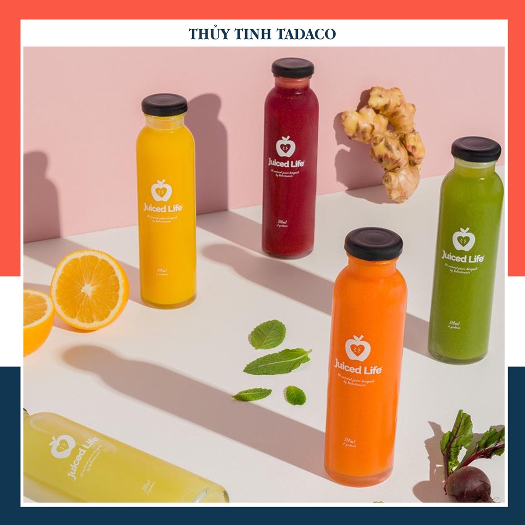 Chai thủy tinh tròn cao nắp thiếc PL 350ml đựng nước ép trà non