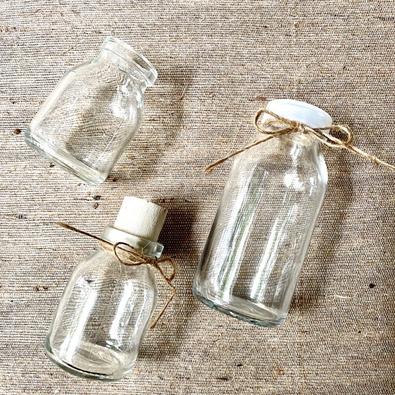 - Chai thủy tinh tròn mini dùng đựng trà hoa, đã trang trí, mẫu thử.....