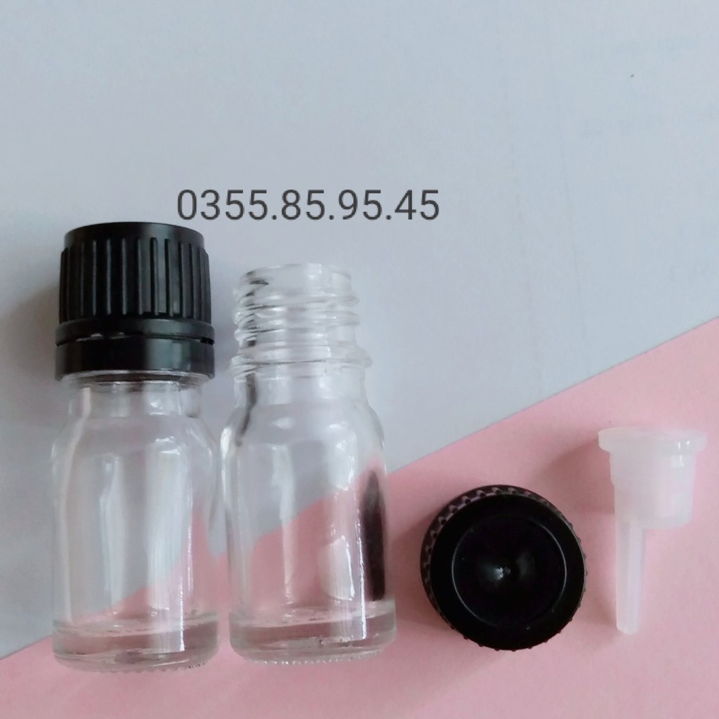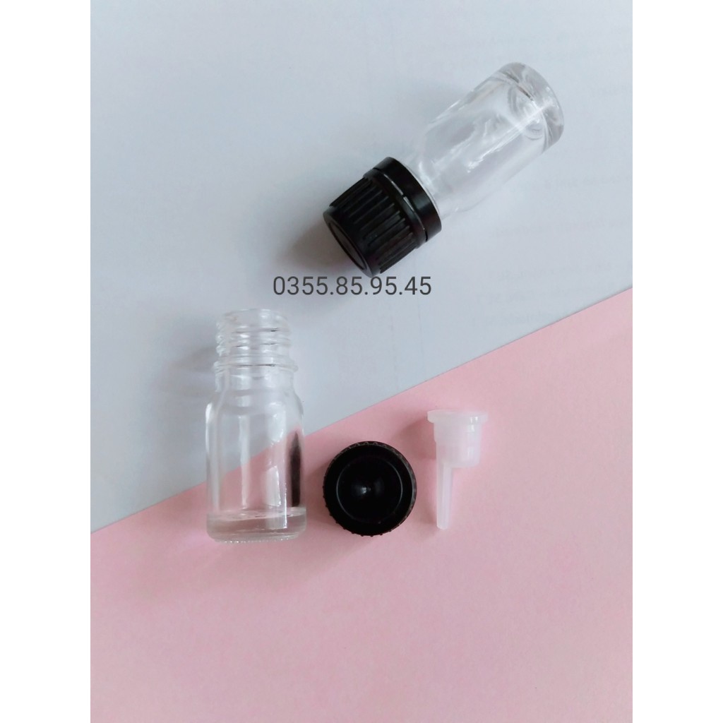 Chai thủy tinh trong 5ml - Chai tinh dầu trong nắp đen nhỏ giọt 5ml