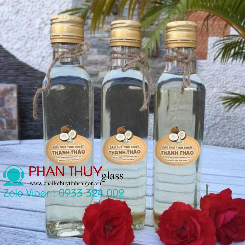 Giới thiệu Chai Thủy Tinh Vuông 250ml Nắp Nhôm Vàng ( CV-250)