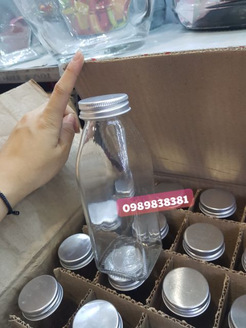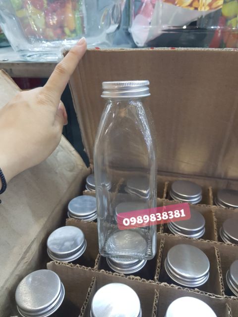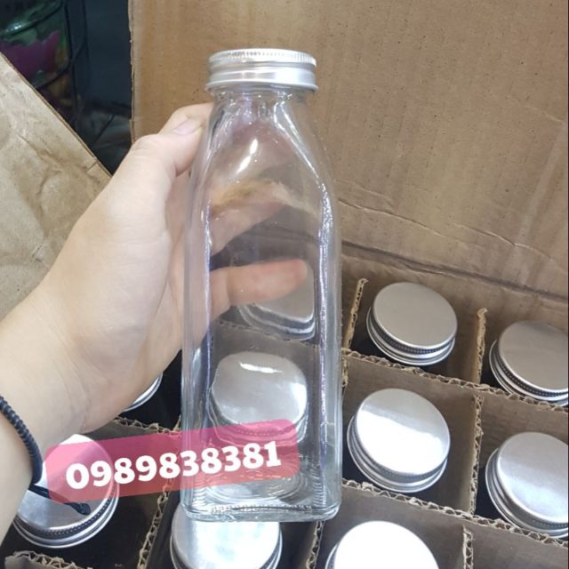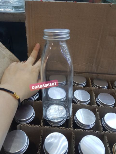 Chai thủy tinh vuông 350ml nắp nhôm