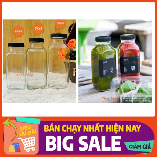 ❣️Chai thủy tinh vuông cao miệng rộng nắp nhựa 250ml-350ml-500ml❣️