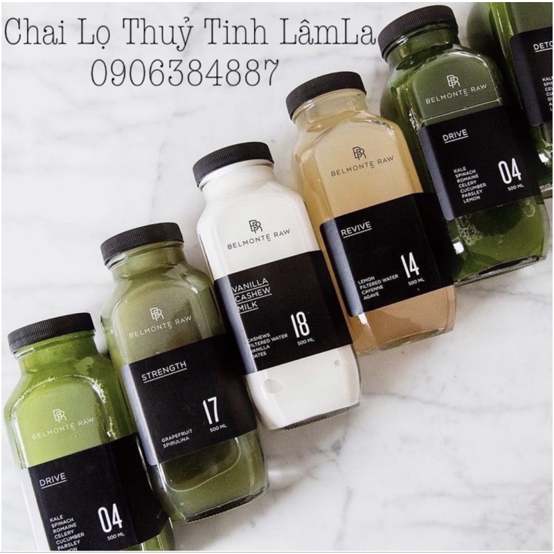 Giới thiệu Chai Thuỷ Tinh Vuông Cao Miệng Rộng Nắp Nhựa 250ml 350ml 500ml | Đựng Nước Ép , Detox , Sữa Chua