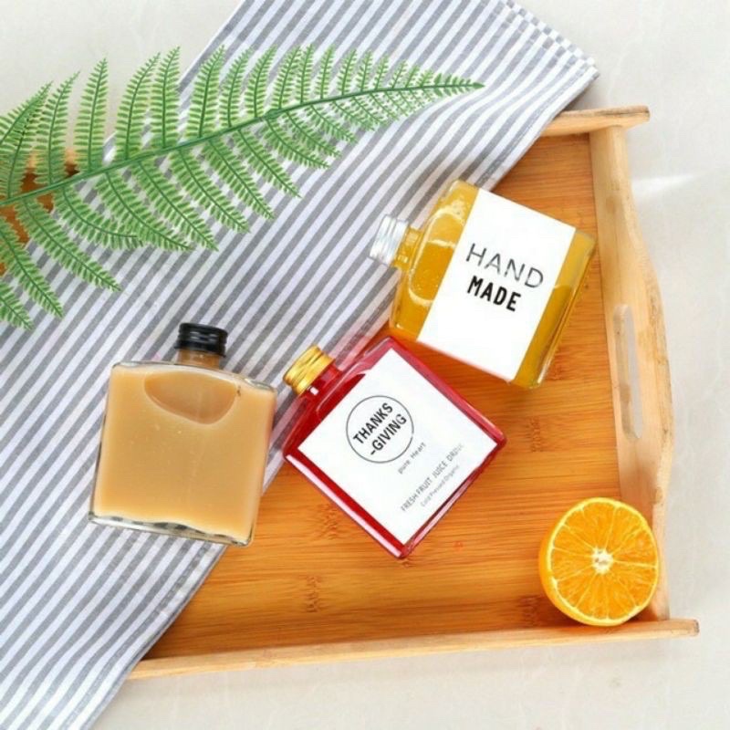 Nhà cửa & Đời sống > Bộ đồ bàn ăn > Bình nước & phụ kiện || Chai thuỷ tinh vuông dáng dẹt 250ml nắp nhôm đựng cafe, nước ép...Còn hàng