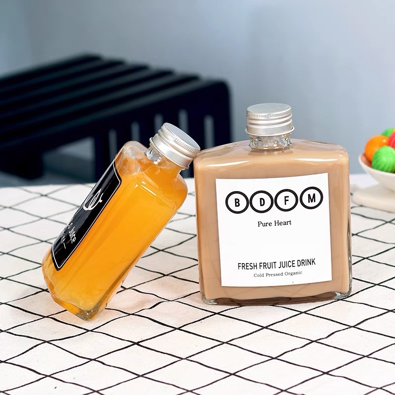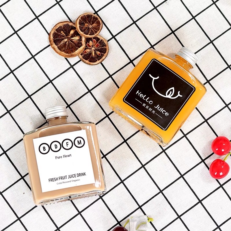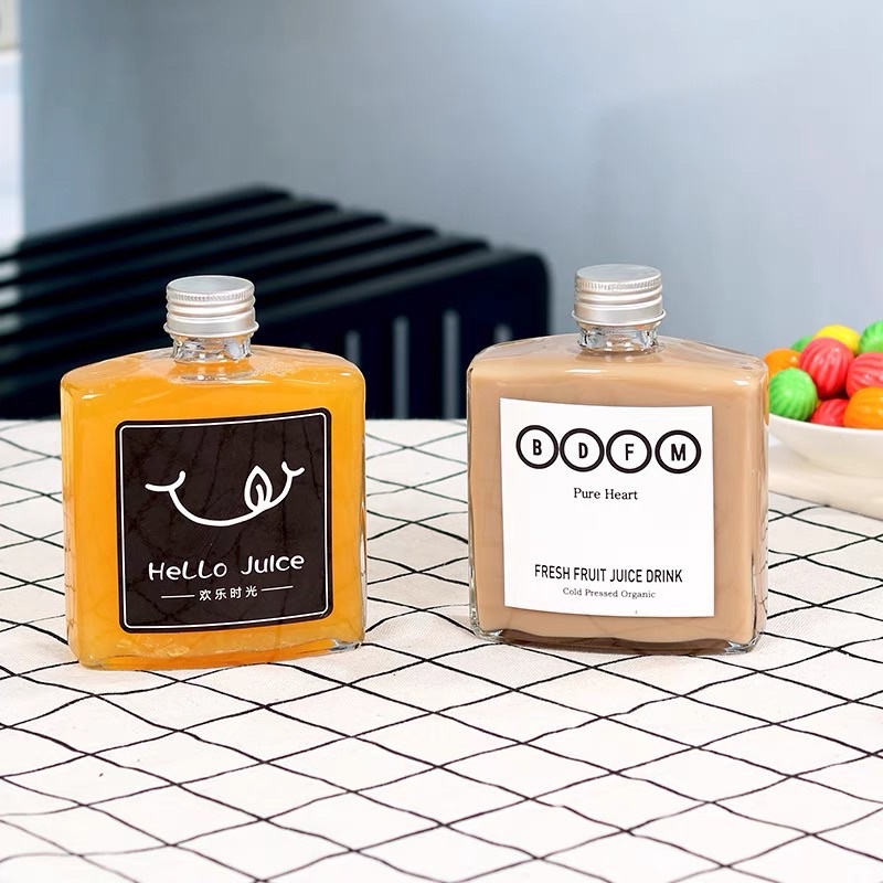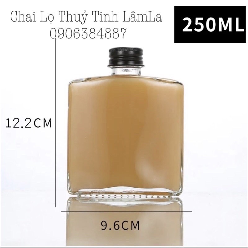 Chai Thuỷ Tinh Vuông Dẹp Nắp Nhôm Bạc 250ml* Thuỷ tinh dày dặn - trong suốt
