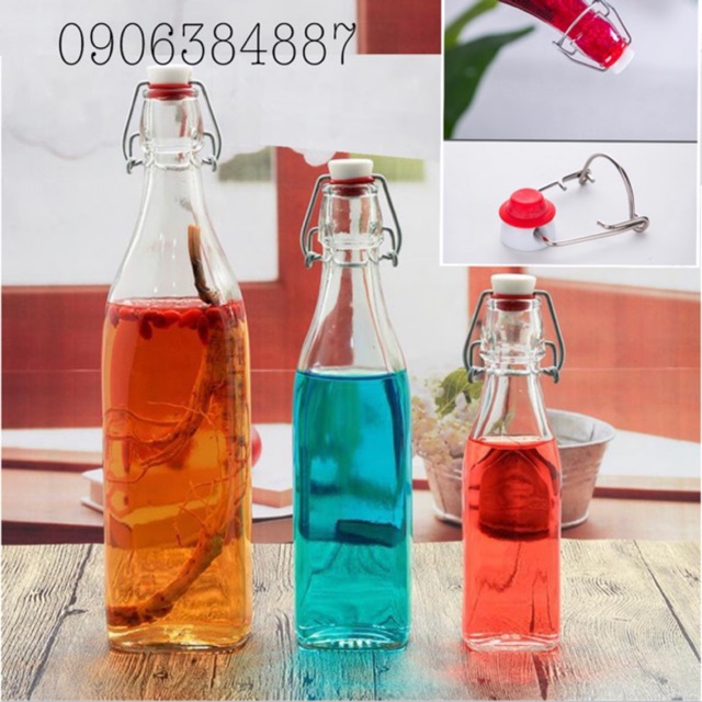 Chai Thuỷ Tinh Vuông - Tròn Gọng Sắt 500mlDung tích : 500ml