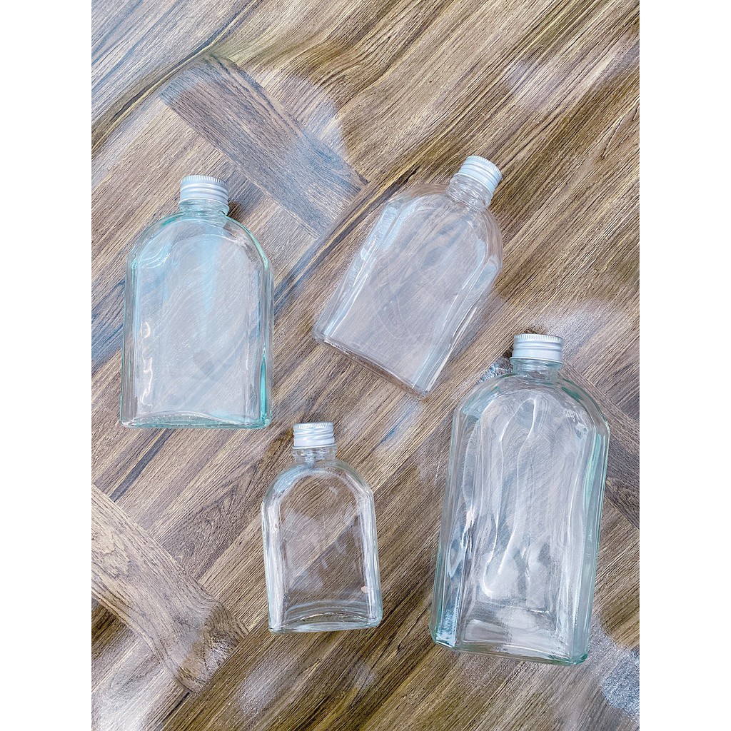 Nhà cửa & Đời sống > Bộ đồ bàn ăn > Bình nước & phụ kiện || Chai thủy tinh VUÔNG – Kiểu DẸT (SUÔNG) nắp Nhôm 100, 200, 250,350 MLCòn hàng