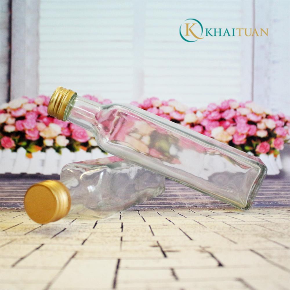 Chai Thủy Tinh Vuông 250ml sử dụng nắp nhôm xoắn vặn rất chặt, giúp bảo quản tốt thức uống không bị rỉ ra ngoài và đảm bảo nắp chai không bị bung trong quá trình vận chuyển.