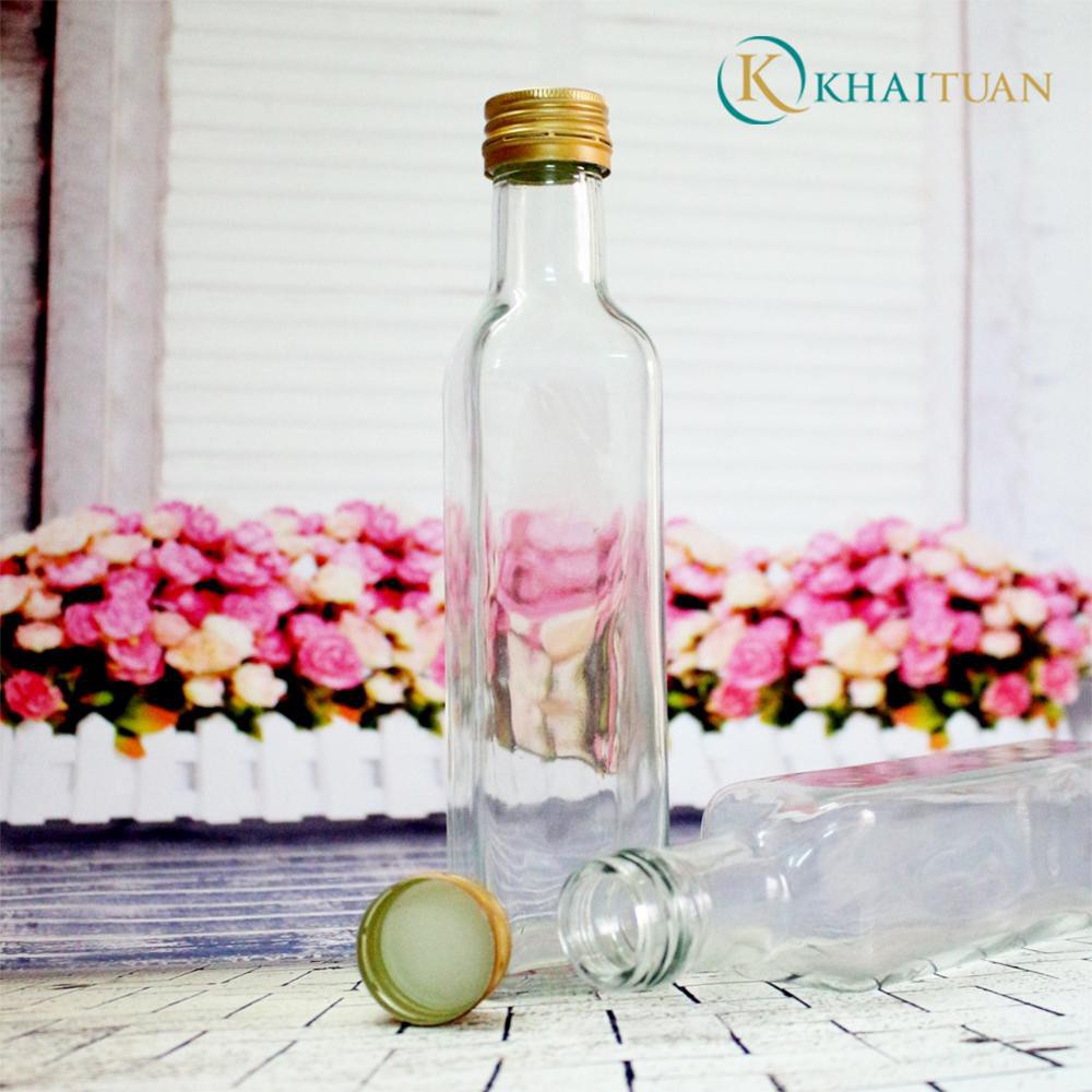Chai Thủy Tinh Vuông Nắp Nhôm 250ml được dùng đựng dầu dừa, dầu oliu, dầu ăn em bé, dầu gấc, decor, nước ép trái cây, sinh tố, sôđa, cocktail, sữa tươi, mật ong, trồng cây, cắm hoa hoặc làm đồ trang trí ...