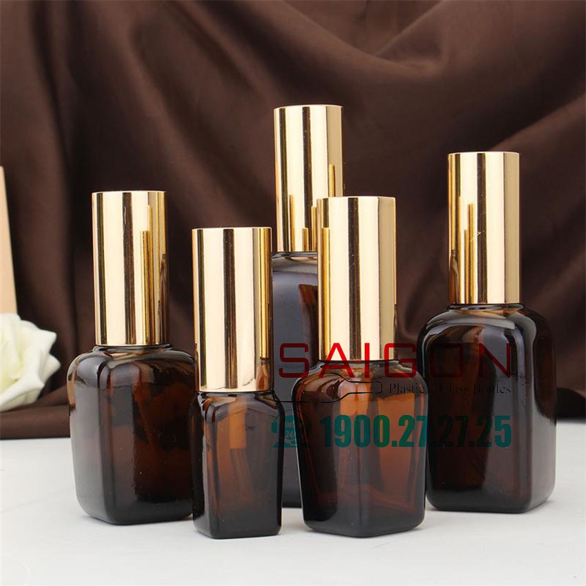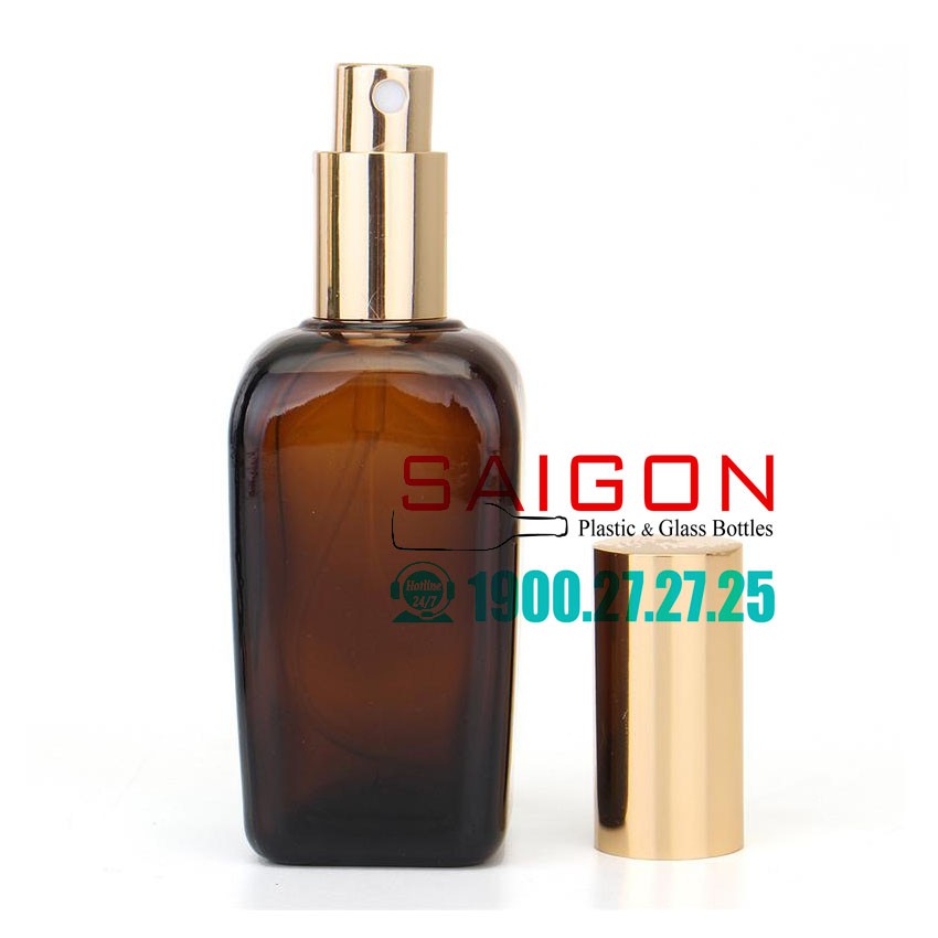 Giới thiệu Chai Thủy Tinh Vuông Nâu Nắp Xịt Mạ Vàng Cao Cấp