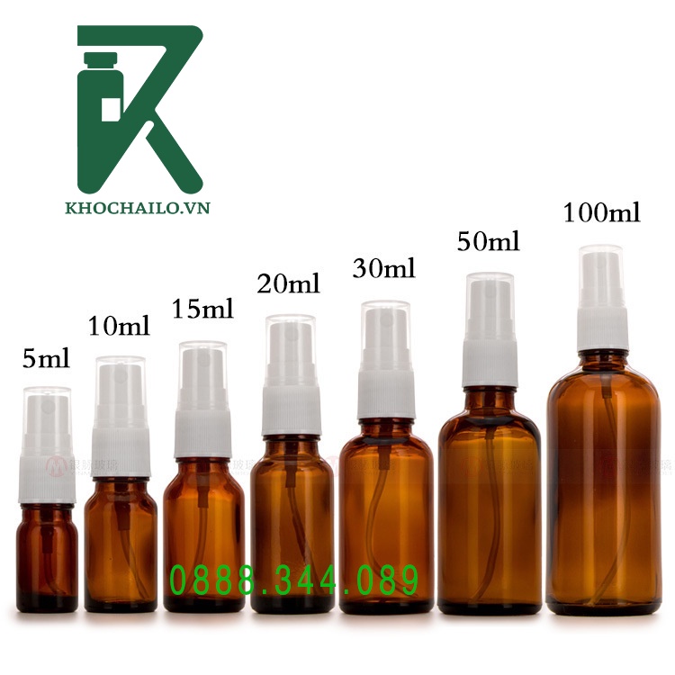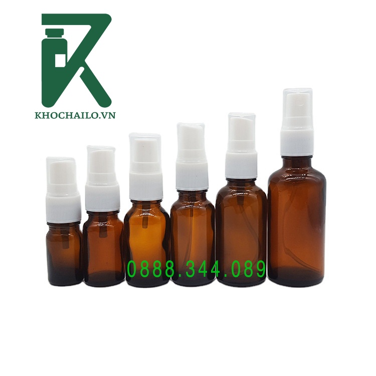 Chai tinh dầu , serum thủy tinh nâu vòi xịt phun sương trắng 5ml,10ml,15ml,20ml,30ml,50ml,100ml