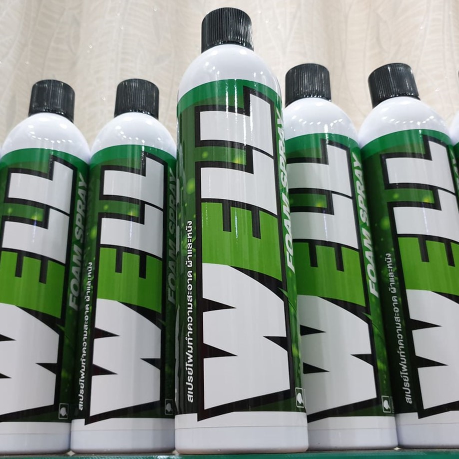 WELL Foam Spray(Vệ sinh khô đa năng siêu nhanh, xịt bọt tuyết- chai lớn)Công dụng: Vệ sinh khô vật dụng cấp tốc, làm sạch vết bẩn, khử trùng và nấm mốc, khử mùi mũ bảo hiểm, đồ bảo hộ, đồ da, giày bata, balô, túi xách, yên xe, sofa, nội thất ô tô.