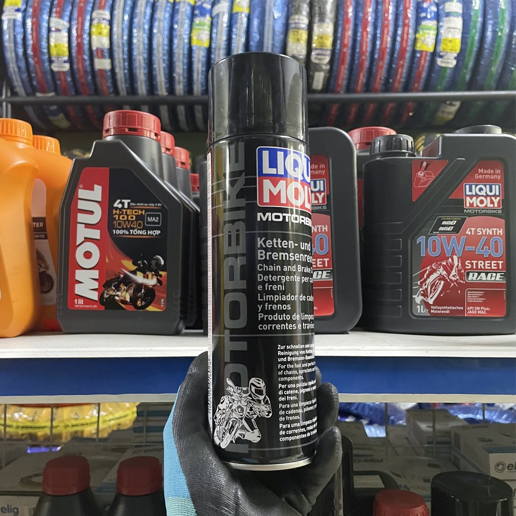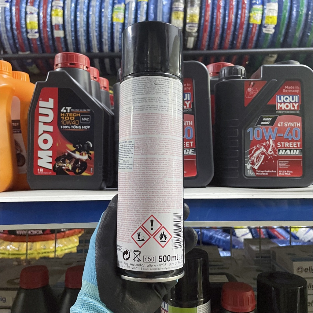 Chai vệ sinh sên Liqui Moly 1602 500ml chuyên vệ sinh sên trần cho các dòng xe hai bánh, xe mô tô phân khối lớn, có tác dụng làm sạch các chất dơ, bụi, đất cát, gỉ sét trên bề mặt sên dĩa. Chai vệ sinh sên Liqui Moly rửa sạch bụi bẩn trong sên, bảo vệ dây sên khỏi các tác nhân gây hại. Bôi trơn chống mài mòn dây sên và bánh răng, kéo dài tuổi thọ dây sên, bánh răng. Đặc biệt phát huy khả năng tẩy rửa bằng sự kết hợp có chọn lọc các dung môi cho hiệu quả làm sạch nhanh chóng, dễ dàng tẩy sạch cặn bẩn, dầu mỡ, chất nhờn cho các chi tiết các bộ phận của xe hai bánh.- Hoàn toàn không chứa chlorine