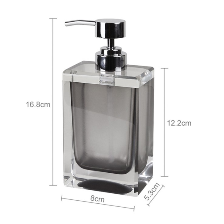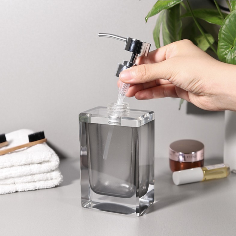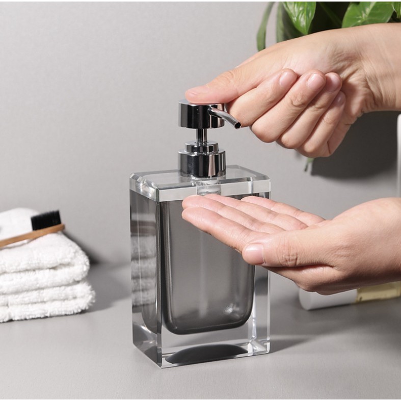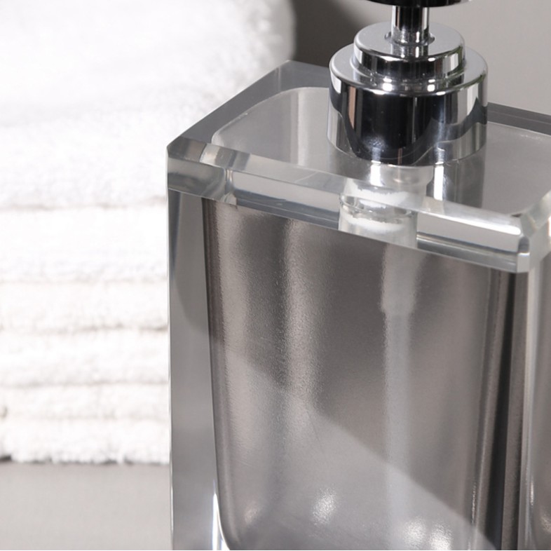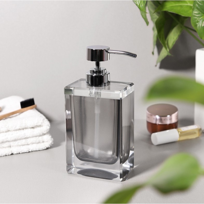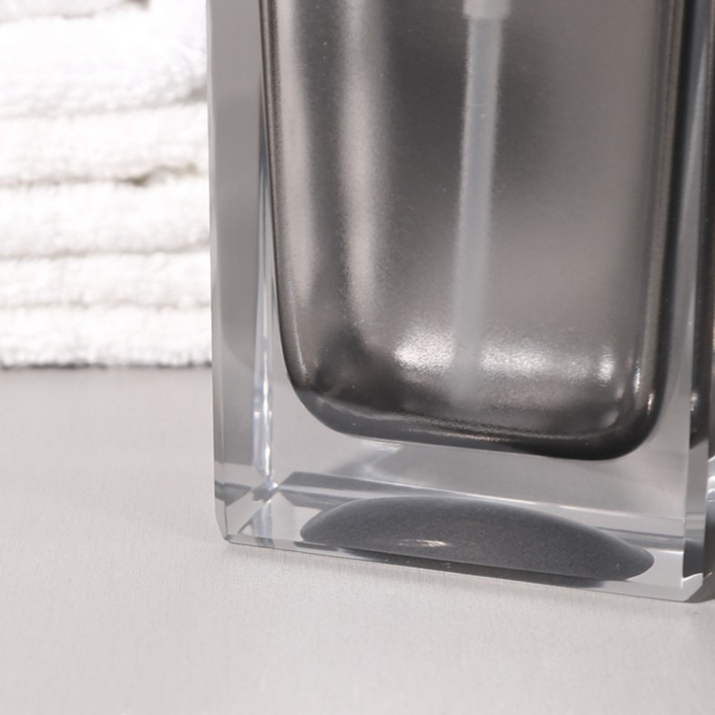 - Chai kit nhà tắm Smoky với thiết kế góc cạnh, tập trung sự phản quang ánh sáng nhờ gam màu bạc tinh tế. Sản phẩm được làm từ nhựa ABS bền đẹp và sang trọng.