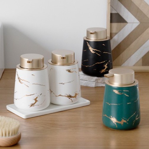 Bình sứ Giúp không gian phòng tắm nhà bạn tiện nghi, sang trọng đã có bình đựng nước rửa tay , dầu gội, sữa tắm bằng sứ vân đá. Chỉ cần một thao tác nhấn nút đơn giản bạn có thể sử dụng các mỹ phẩm này mà không phải bật nắp chai sản phẩm.