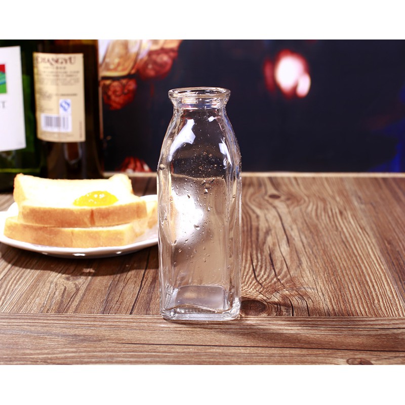 Được làm từ thủy tinh cao cấp, dùng làm bình đựng nước, các loại nước ép trái cây, sinh tố. Kích thước thước thon gọn, đễ chùi rửa, chịu nhiệt cao. Chai vuông 350ml nút gỗ Thích hợp cho các quán trà sữa, cafe, gia đình sử dụng