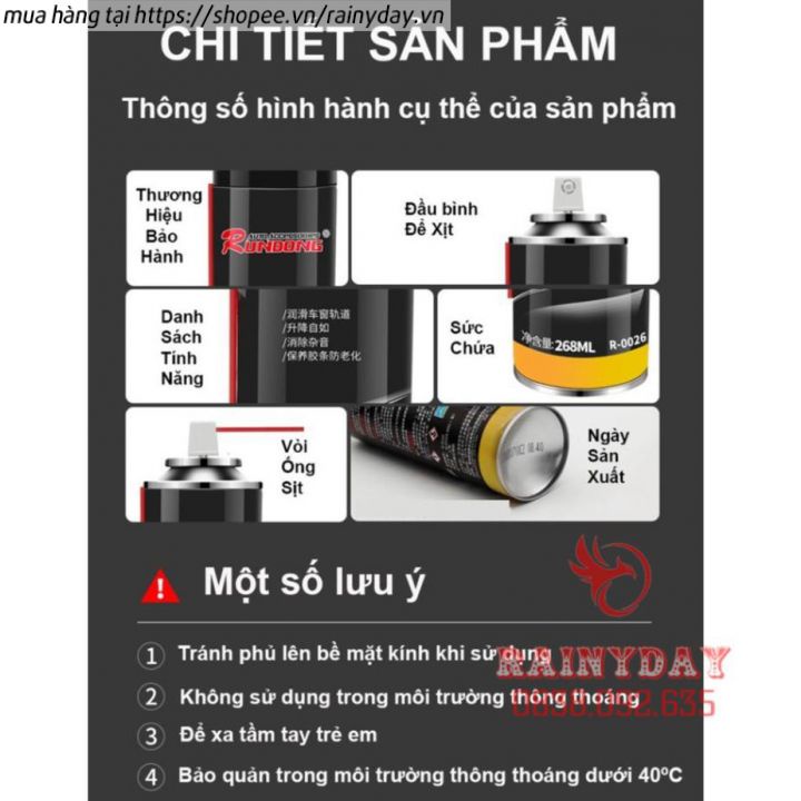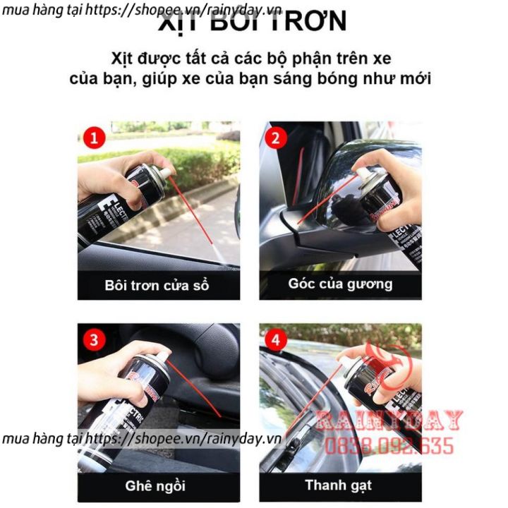 Giới thiệu Chai xịt bảo dưỡng bôi trơn gioăng ron cao su cửa kính xe hơi ô tô, dung dịch làm mới chống kẹt