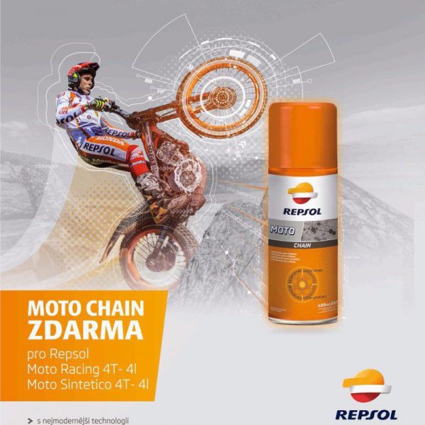 - Chai xịt sên Repsol Moto Lube Chain mang lại sự bảo vệ và vận hành tối ưu, giúp kéo dài tuổi thọ cho sên xe của bạn. Sản phẩm giúp giảm tiếng ồn, giúp sên trần khó bị bám bụi, bảo vệ ron cao su trên sên xích.