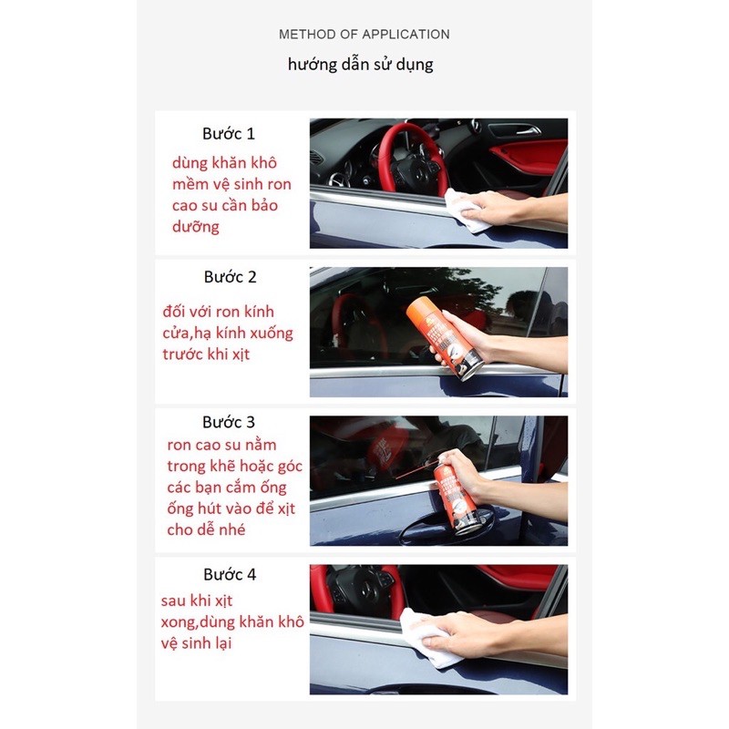 Giới thiệu Chai xịt bảo dưỡng gioăng cao su kính ô tô- xe tải- gioăng cao su cửa kính, gioăng cửa sổ trời,bôi trơn khe kẽ 450ml
