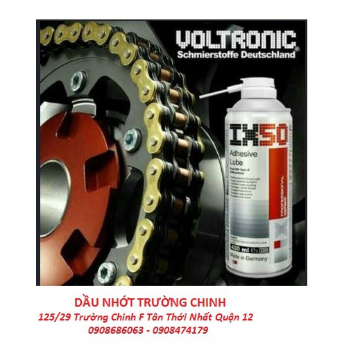 Ô tô > Dầu nhớt và phụ gia ô tô > Mỡ & Chất bôi trơn || Chai xịt bảo dưỡng sên VOLTRONIC IX50 400mlCòn hàng