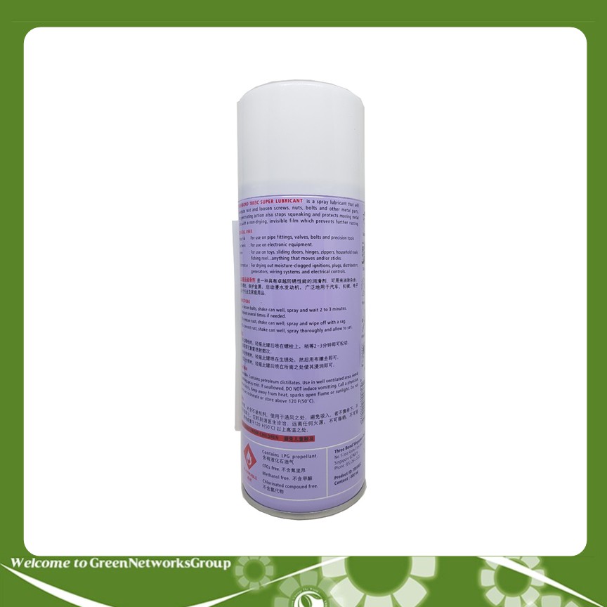 MÔ TẢ SẢN PHẨM:Chai xịt bôi trơn ThreeBound super LUBRICAN 400ml là chất bôi trơn, khi sử dụng sẽ thấm rỉ sét và nới lỏng các ốc vít, đai ốc, bu lông và các bộ phận kim loại khác. Sản phẩm sẽ giúp các vật dụng cơ học ngừng kêu và bảo vệ các bộ phận kim loại đang chuyển động giữ chúng không bị khô. Ngoài ra sản phẩm còn có thể nhìn thấy để ngăn ngừa sự gỉ sét hơn nữa.