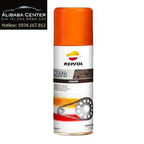 Chai xịt sên Repsol Moto Chain Lube 400ml Sản xuất tại Tây Ban Nha,dạng khí-lỏng. bảo vệ và bôi trơn tối ưu cho hoạt động của sên.