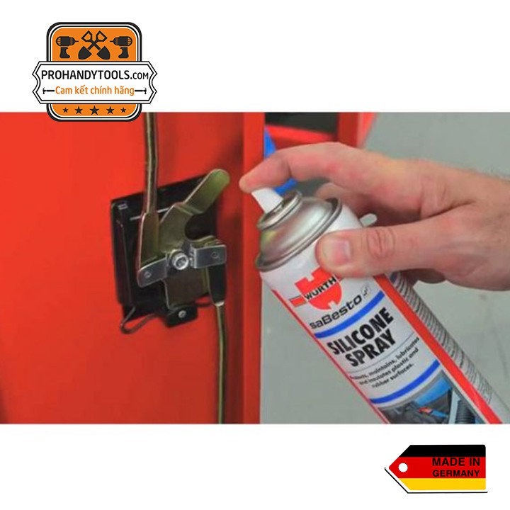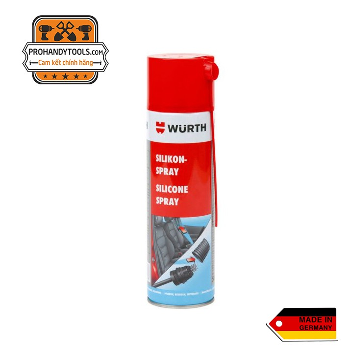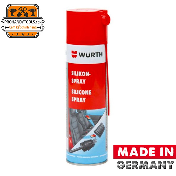 CHAI XỊT BÔI TRƠN TIẾP ĐIỂM WURTH SILICONE SPRAY 500ml chính hãng Wurth 100% xuất xứ tại Đức với khả năng làm trơn chống rít gioăng kinh xe ô tô, làm trơn chốt khoá dây bảo hiểm, làm bóng các bề mặt của tablô, ngoài ra với thiết kế đầu ống nhỏ dài sản phẩm còn có thể dùng để bôi trơn các kẽ sâu khó tiếp cận, hay vật dụng ít tháo lắp, bôi trơn bản lề cửa xe dễ dàng không gặp nhiều cản trở,…Phục hồi nhựa, tái tạo chống lão hóa các chi tiết cao su, bảo vệ và làm tăng tiếp xúc các tiếp điểm mạch điện.Bảo vệ các chi tiết bằng nhựa, giữ lại độ bóng cao và chống bị giòn. Bảo vệ các chi tiết cao su, giữ lại độ mềm và tính đàn hồi tốt của sản phẩm thiết bị.