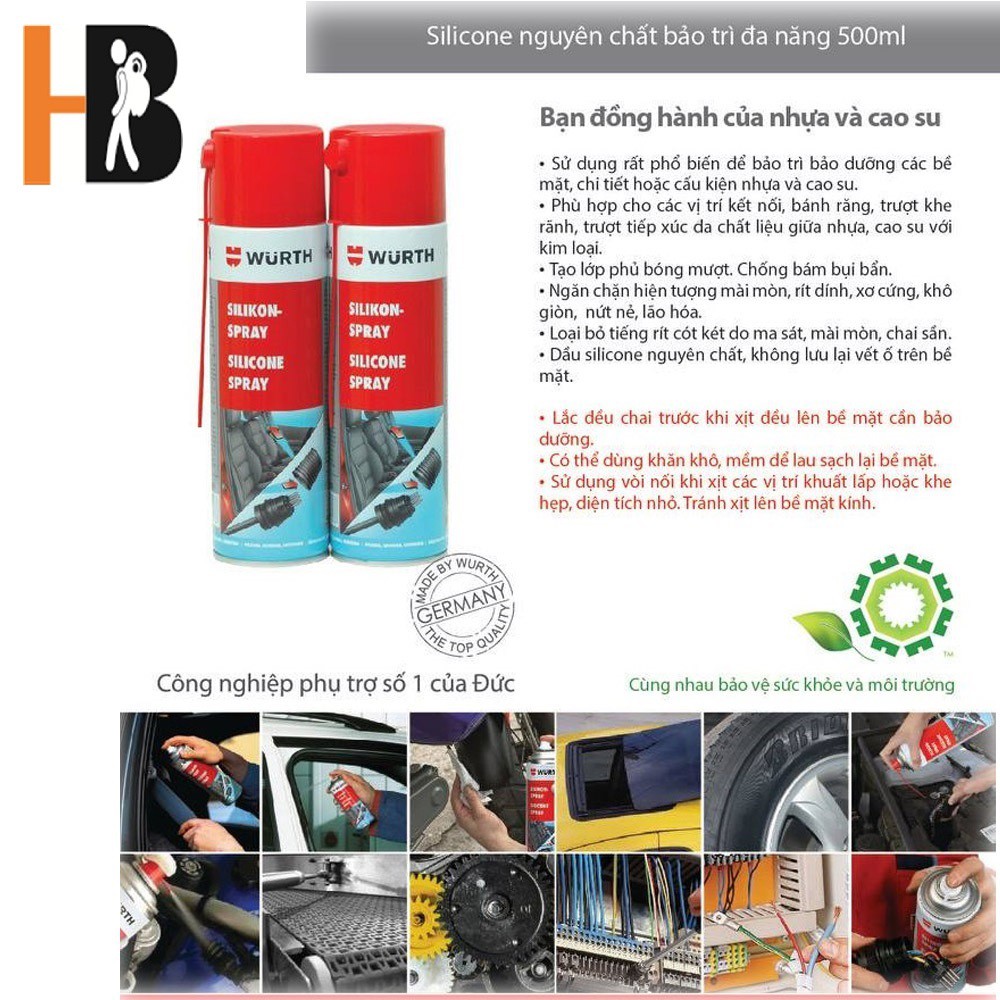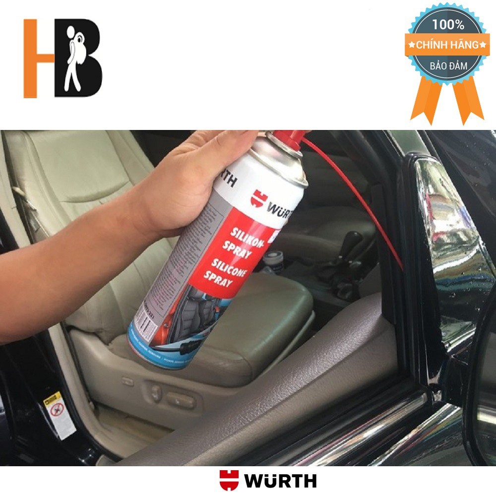 Chai Xịt Bôi Trơn Tiếp Điểm Wurth Silicone Spray 500ml 0893221HB Center xin giới thiệu Chai Xịt Bôi Trơn Tiếp Điểm Wurth Silicone Spray 500ml 0893221 làm trơn chống rít gioăng kinh xe ô tô, làm trơn dây bảo hiểm, làm bóng các bề mặt của tab lô, bôi trơn các kẽ sâu khó tiếp cận, ít tháo lắp, bôi trơn bản lề cửa xe…