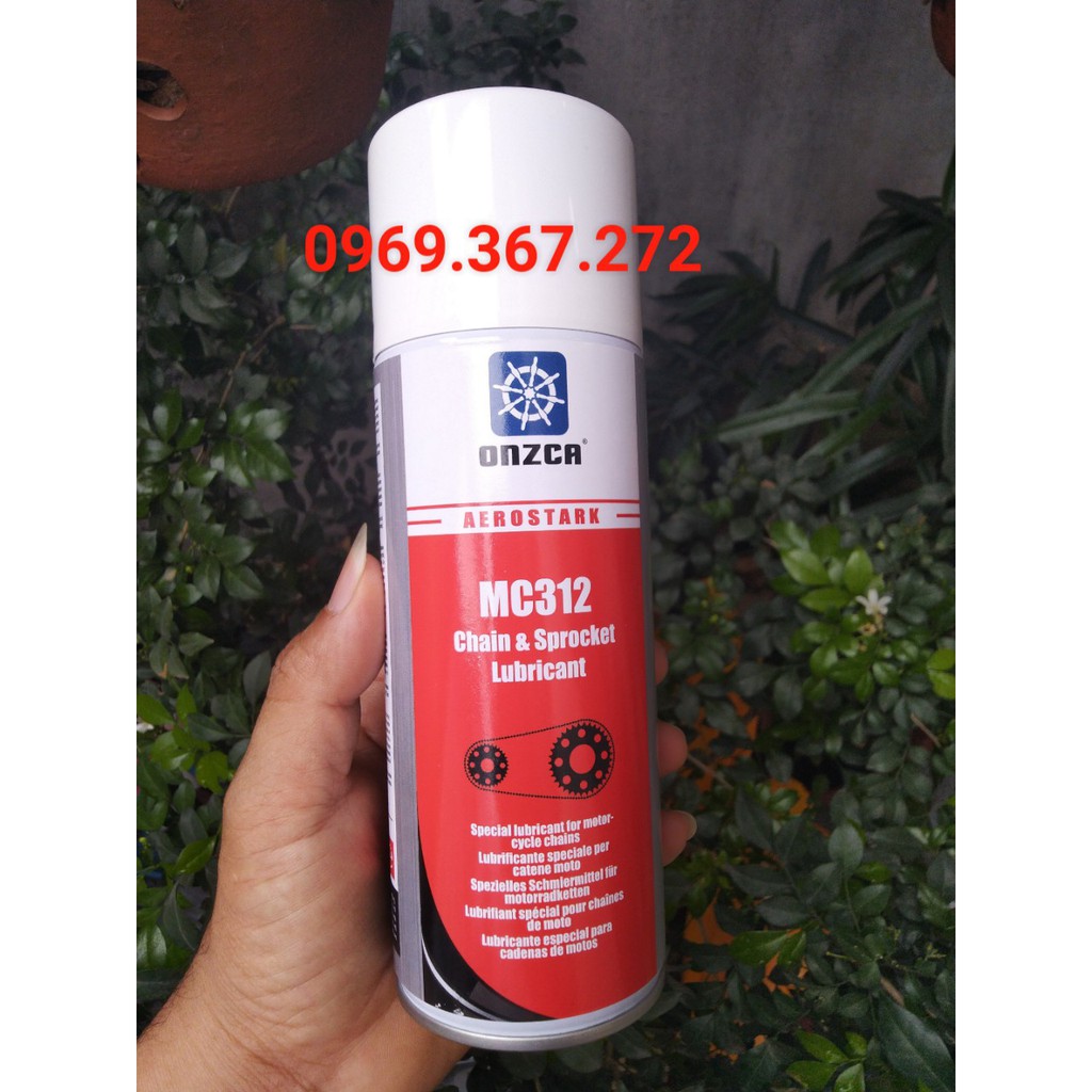 Chai xịt bôi trơn và dưỡng sên đa dụng Onzca MC1312 Chain & Sprocket Lubricant 400mlMC1312 - 312 là chất bôi trơn đặc biệt cho dây sên, phù hợp cho tất cả các dòng sên O-ring, X-ring, Z-ring có phốt và không phốt.