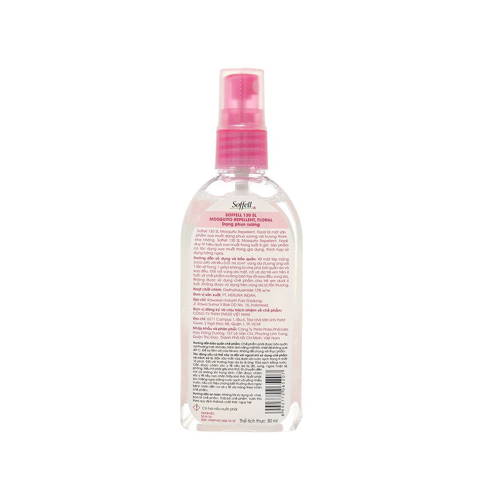 Xịt chống muỗi, đuổi muỗi Soffell thuộc tập đoàn Enesis chuyên sản xuất các sản phẩm chống muỗi. Các sản phẩm mang thương hiệu Soffell luôn được kiểm chứng là an toàn cho da nhất là làn da trẻ em, nên được nhiều người tin dùng để bảo vệ sức khỏe bản thân và gia đình. Sản phẩm luôn được nhiều người tiêu dùng lựa chọn.THÔNG TIN SẢN PHẨM CHAI XỊT CHỐNG MUỖI :