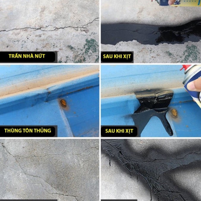 Tên sản phẩm: Chai xịt chống thấm Waterproof Spray PolyurethaneBịt kín mọi KHE NỨT , chống thấm TƯỜNG, TRẦN, MÁI NHÀ , SÂN THƯỢNG, NHÀ VỆ SINH, MÁNG SÓI, ...