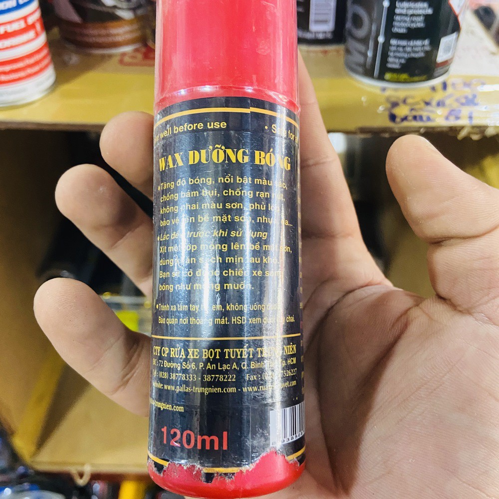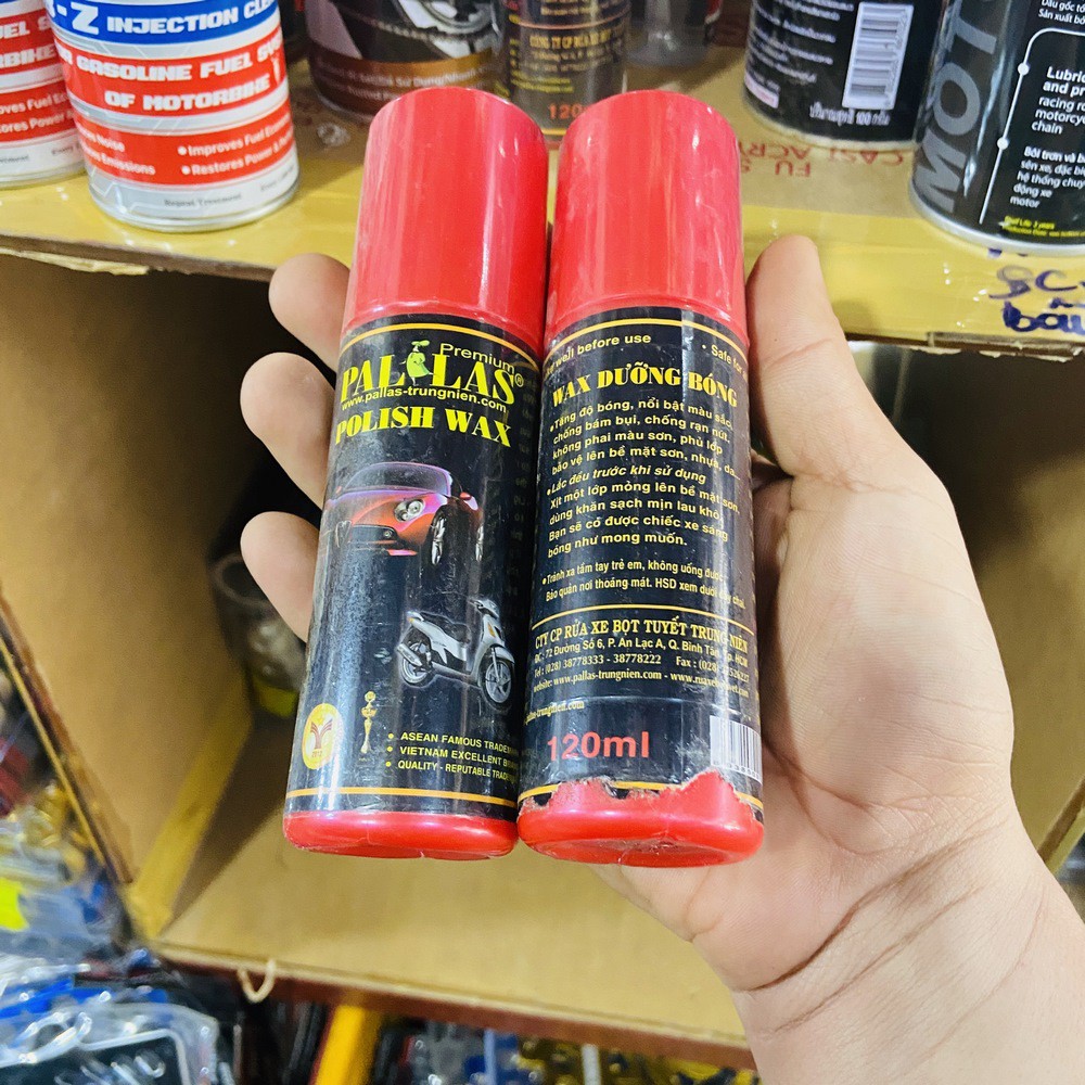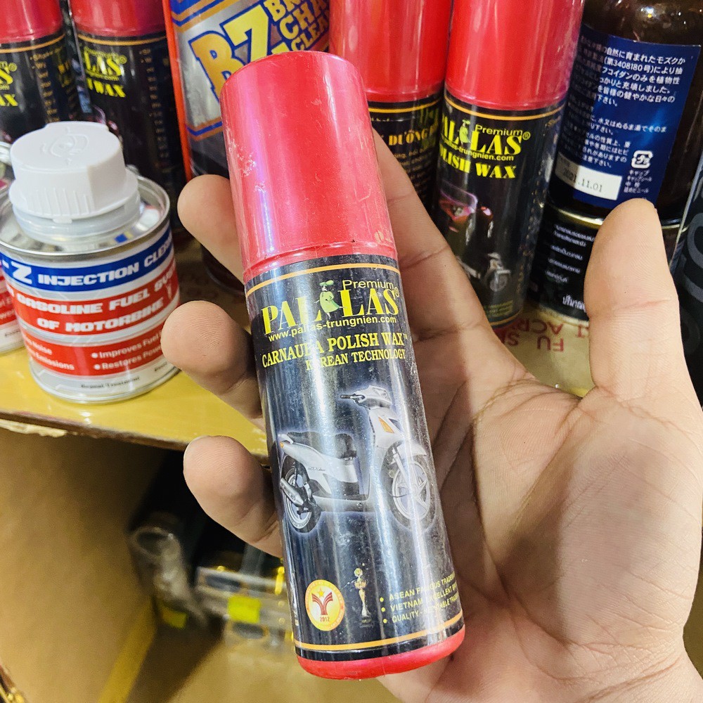 Ô tô > Dầu nhớt và phụ gia ô tô > Mỡ & Chất bôi trơn || CHAI XỊT DƯỠNG BÓNG MÀU SƠN DÀN ÁO CHO MÔTO XE MÁY CAO CẤP (PAL&LAS)Còn hàng