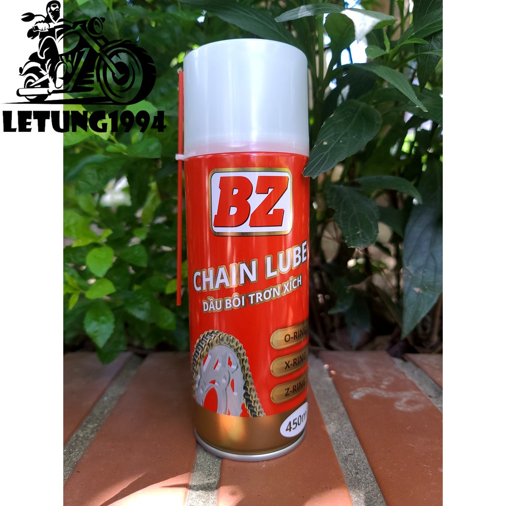 Giới thiệu Chai Xịt Dưỡng Sên BZ CHAIN LUBE 450ml, chai bôi trơn bảo dưỡng sên BZ 450ml dạng tơ nhện bám dính giá tốt nhất