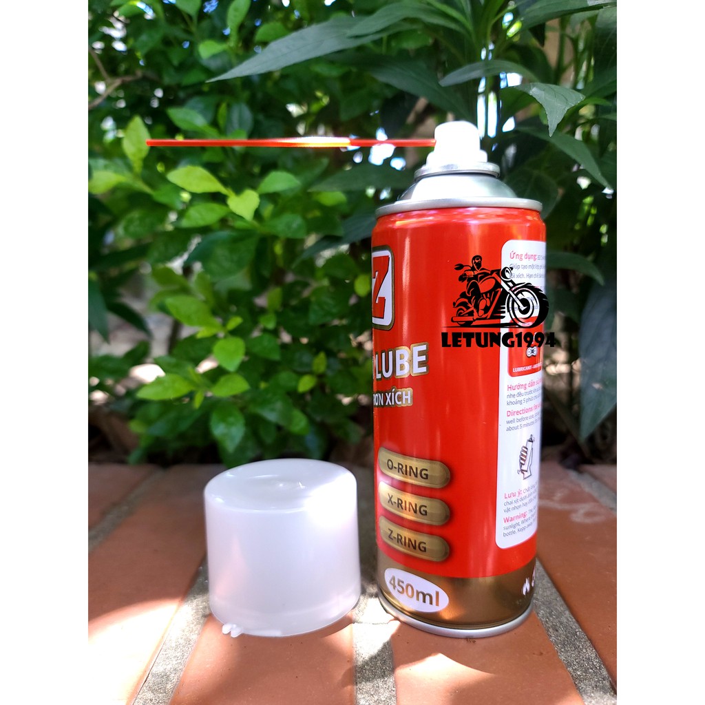 Chai Xịt Dưỡng Sên BZ CHAIN LUBE 450ml, chai bôi trơn bảo dưỡng sên BZ 450ml dạng tơ nhện bám dính giá tốt nhất