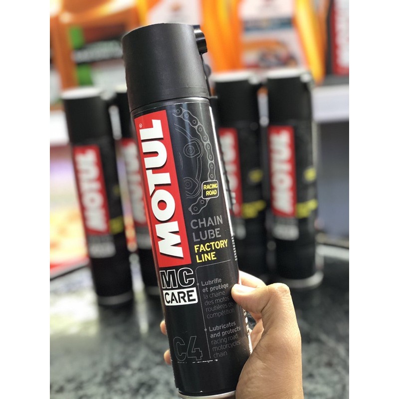 Chai xịt dưỡng sên, dưỡng xích bôi trơn xích Motul C4 Chain Lube Factory Line 400ml nhập khẩu Pháp