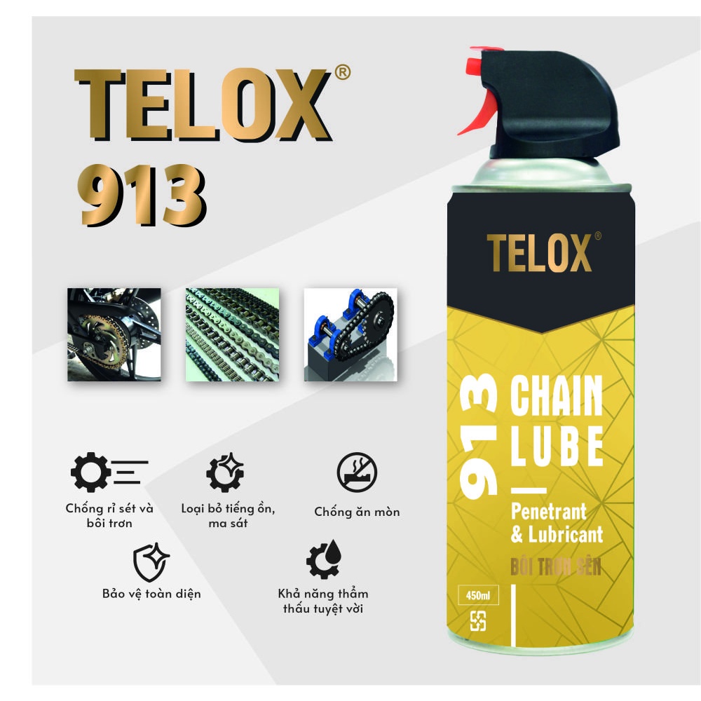 Ô tô > Dầu nhớt và phụ gia ô tô > Mỡ & Chất bôi trơn || CHAI XỊT DƯỠNG SÊN, MỠ BÔI TRƠN TELOX 913, CHAIN LUBE [450ml] - King ShowCòn hàng