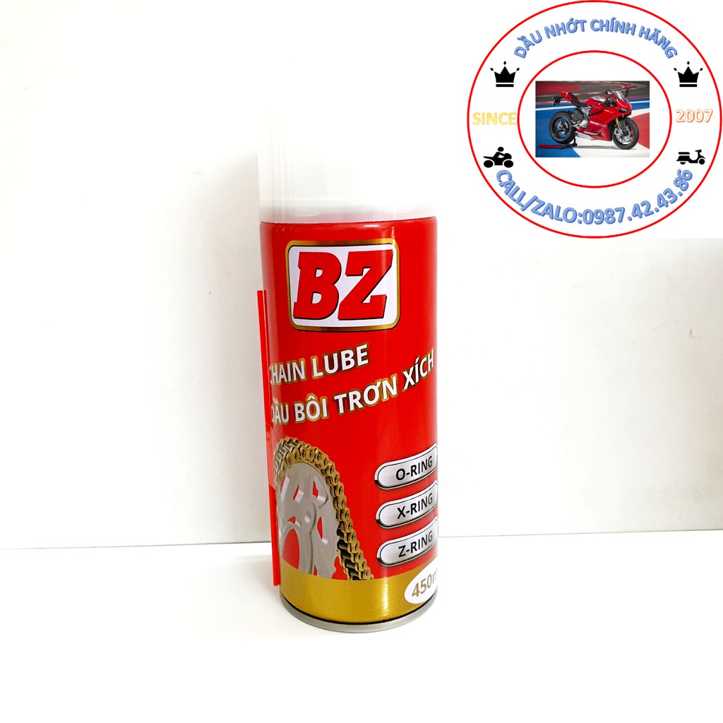 Ô tô > Dầu nhớt và phụ gia ô tô > Mỡ & Chất bôi trơn || CHAI XỊT DƯỠNG SÊN XÍCH BZ CHAIN LUBE 450MLCòn hàng
