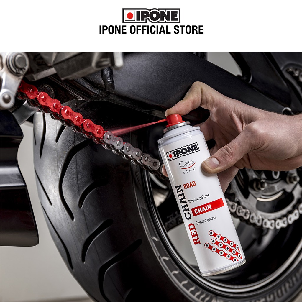 Chai xịt dưỡng sên/xích, nhuộm sên màu đỏ, chống trôi, chống gỉ, siêu chịu tải Ipone Red Chain (250ml)