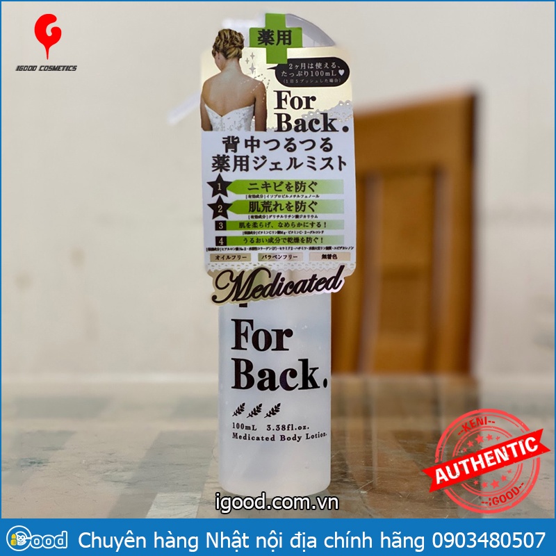Chai xịt giảm mụn lưng For Back Nhật BảnQuy cách: chai xịt dạng gel dung tích: 100ml