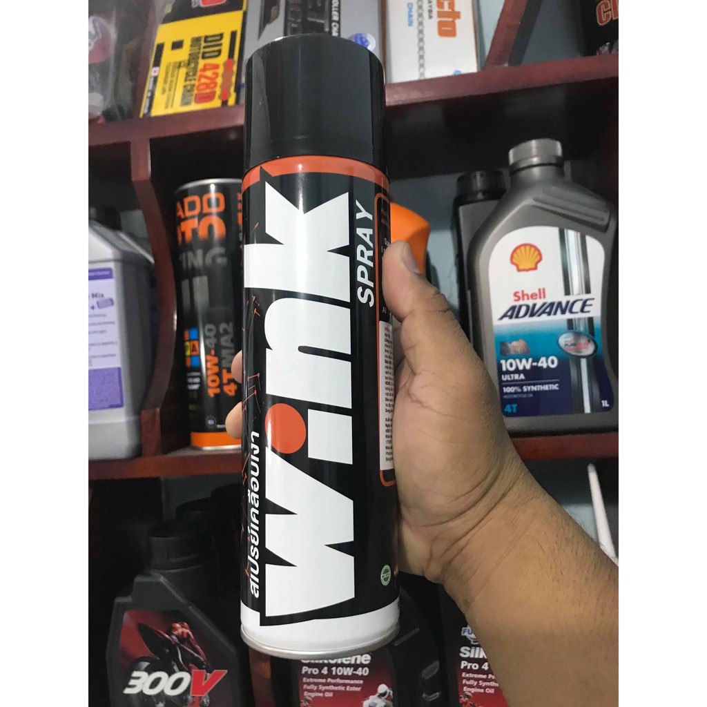 Chai Xịt Làm Bóng Dàn Áo Wink Spray 600ml -Làm bóng dàn áo siêu nhanh, tạo hương thơm. -Bảo dưỡng, làm đậm màu dàn áo nước sơn mờ, nhám. -Chi tiết kim loại màu đen: heo dầu, pô, chảng ba, ống lòng phuộc, gác chân, ...Giá RTX