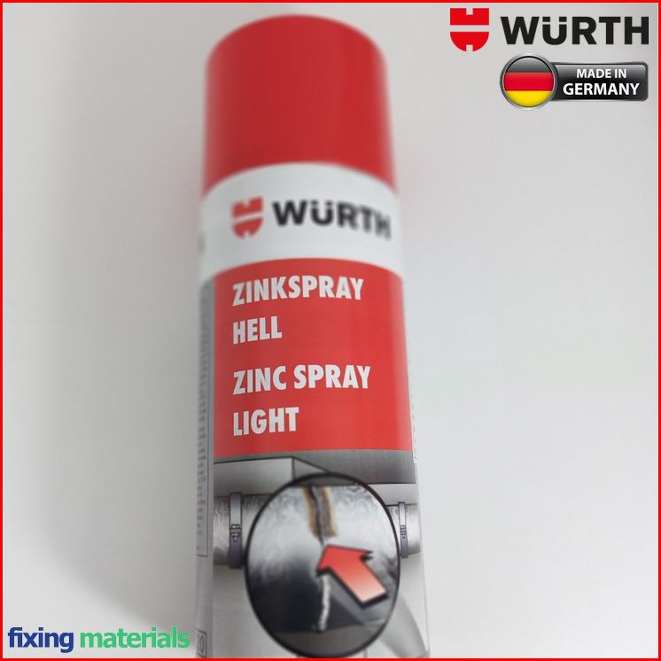 Chai Xịt Mạ Kẽm Chống Gỉ, Chịu Nhiệt Cao Wurth Zinc Spray 400ml+ Là dạng sơn chống gỉ chịu nhiệt độ cao tới 240°C với thành phần 96.5% kẽm nguyên chất. Bảo vệ chống rỉ, kháng muối, chống ăn mòn và khả năng bám dính tuyệt vời trên bề mặt kim loại trần.