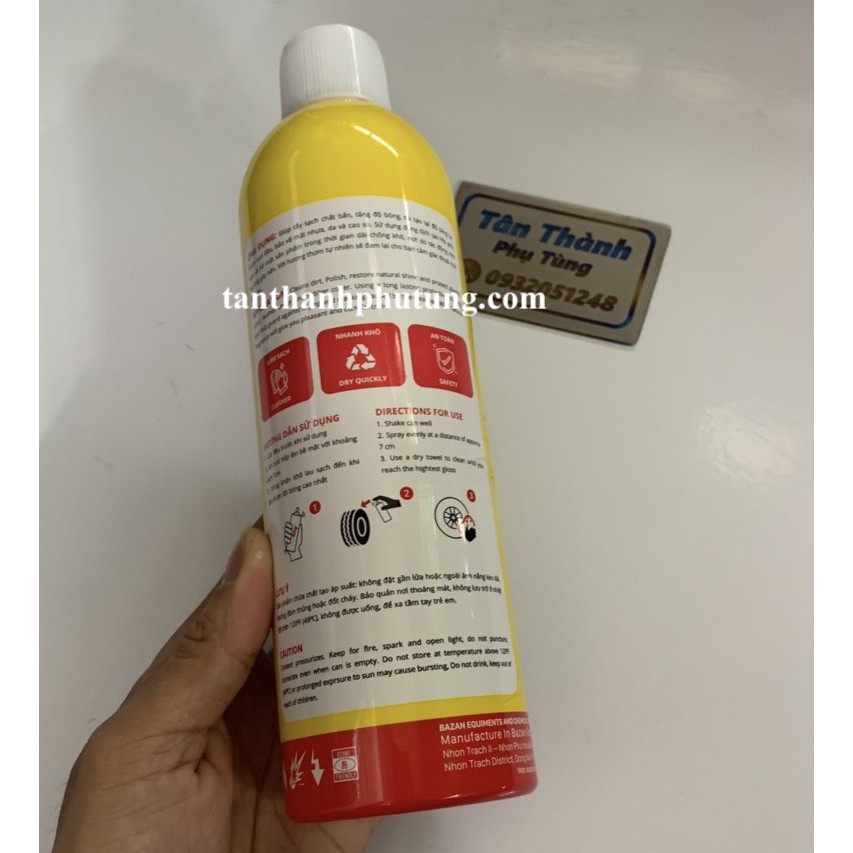 Ô tô > Dầu nhớt và phụ gia ô tô > Mỡ & Chất bôi trơn || CHAI XỊT PHỤC HỒI NHỰA NHÁM VỎ XE BZ 600mlCòn hàng