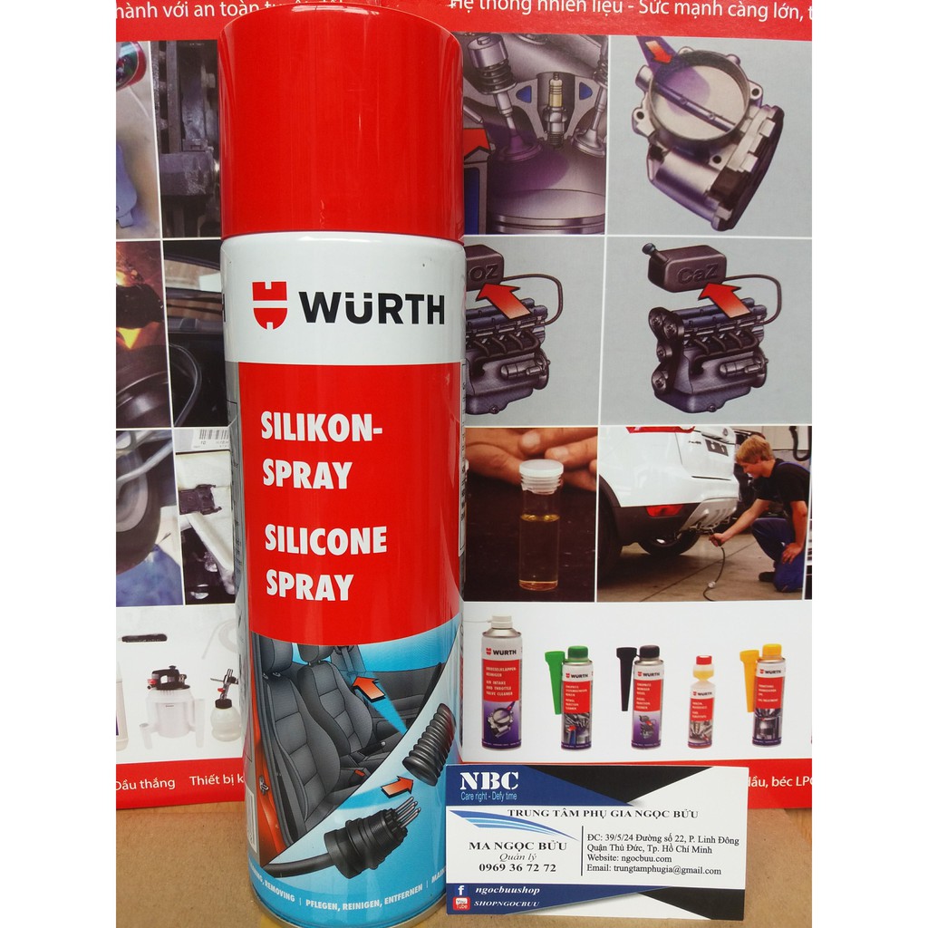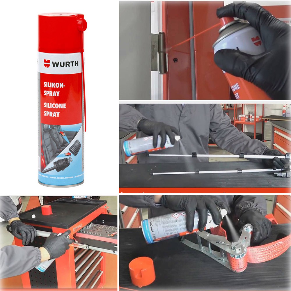 Chai Xịt Silicone Bảo Dưỡng Nhựa Cao Su Wurth Silicone Spray 500mlChai xịt Silicone SprayWurth dùng cho bảo dưỡng ron kính cửa xe ô tô và các bộ phận khác trên xe như các chụp cao su, roăng cửa, chụp cần số, taplo, con lăn dây đai an toàn, chốt cửa, bảng điều khiển,…