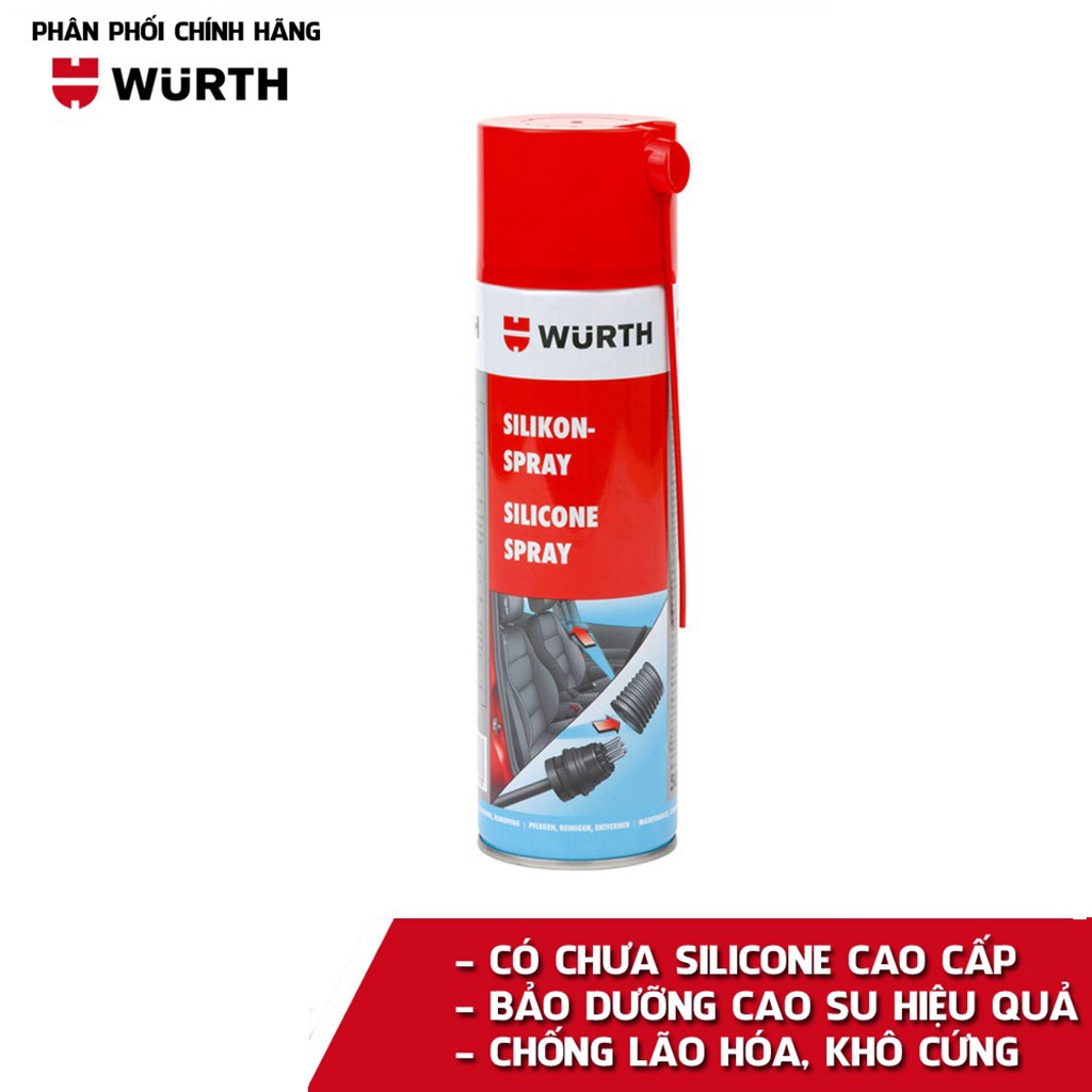 Chai Xịt Silicone Bôi Trơn Phục Hồi Cao Su và Nhựa Wurth Silicone Spray 500ml Nhập Khẩu Chính Hãng CHLB Đức WU-DDN500