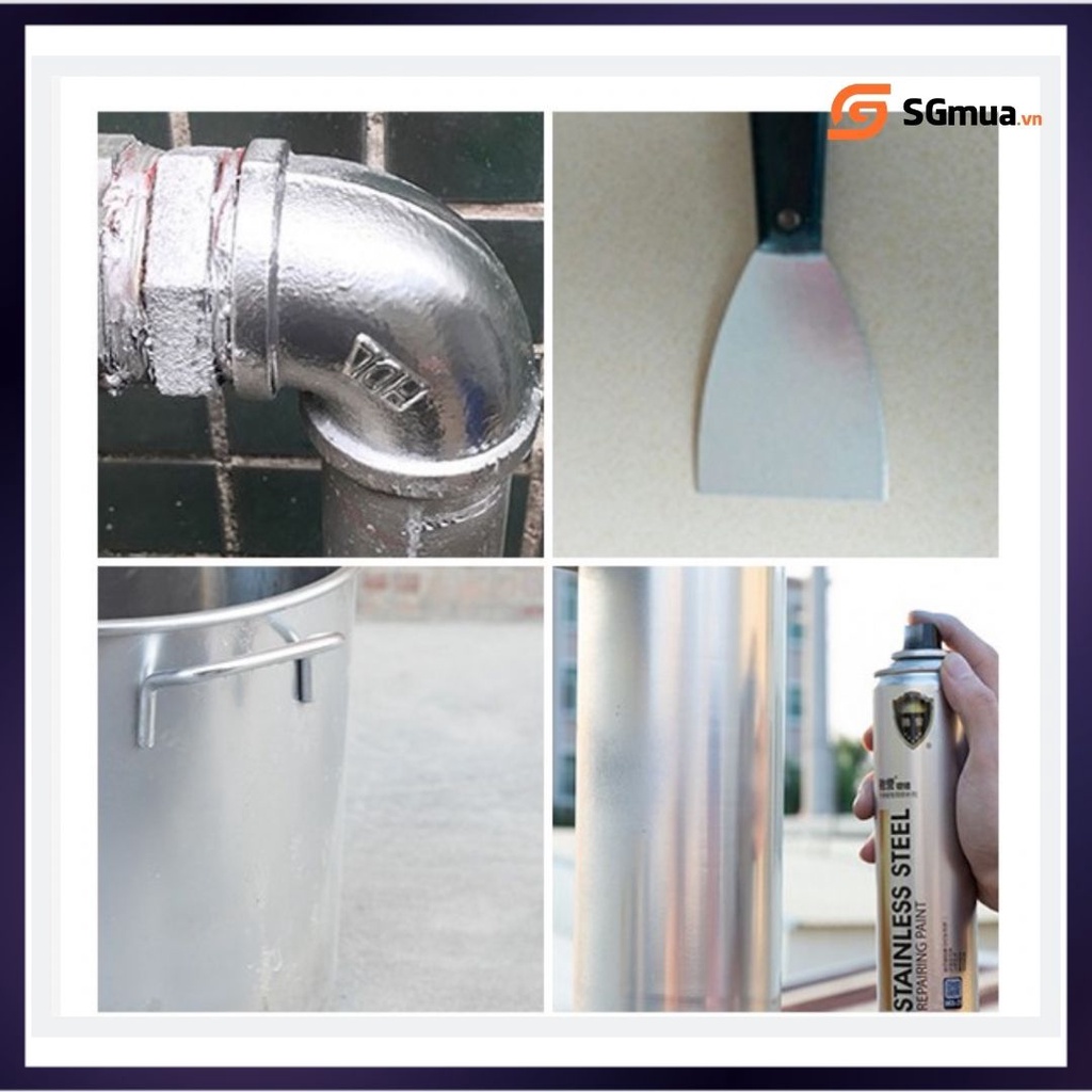 - Ngoài công dụng trang trí, sơn xịt giả màu inox còn bảo vệ bề mặt sản phẩm. Bảo vệ đồ vật không bị nứt nẻ, han rỉ và thẩm thấm nước, có khả năng chống chịu với thời tiết.