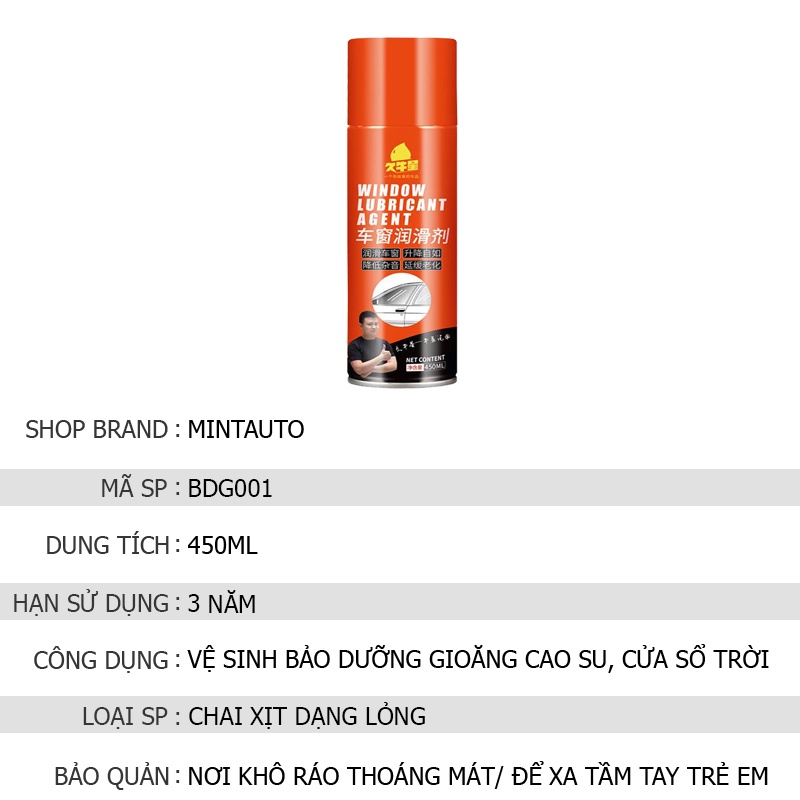 Giới thiệu Chai xịt vệ sinh bảo dưỡng gioăng cao su Window Lubricant Agent siêu sạch dung tích 450ml