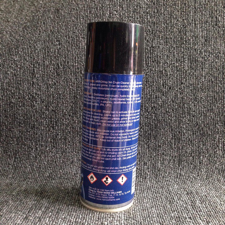 Ô tô > Dầu nhớt và phụ gia ô tô > Mỡ & Chất bôi trơn || Chai xịt vệ sinh sên ARROW N-4 CHAIN CLEAR 400MLCòn hàng