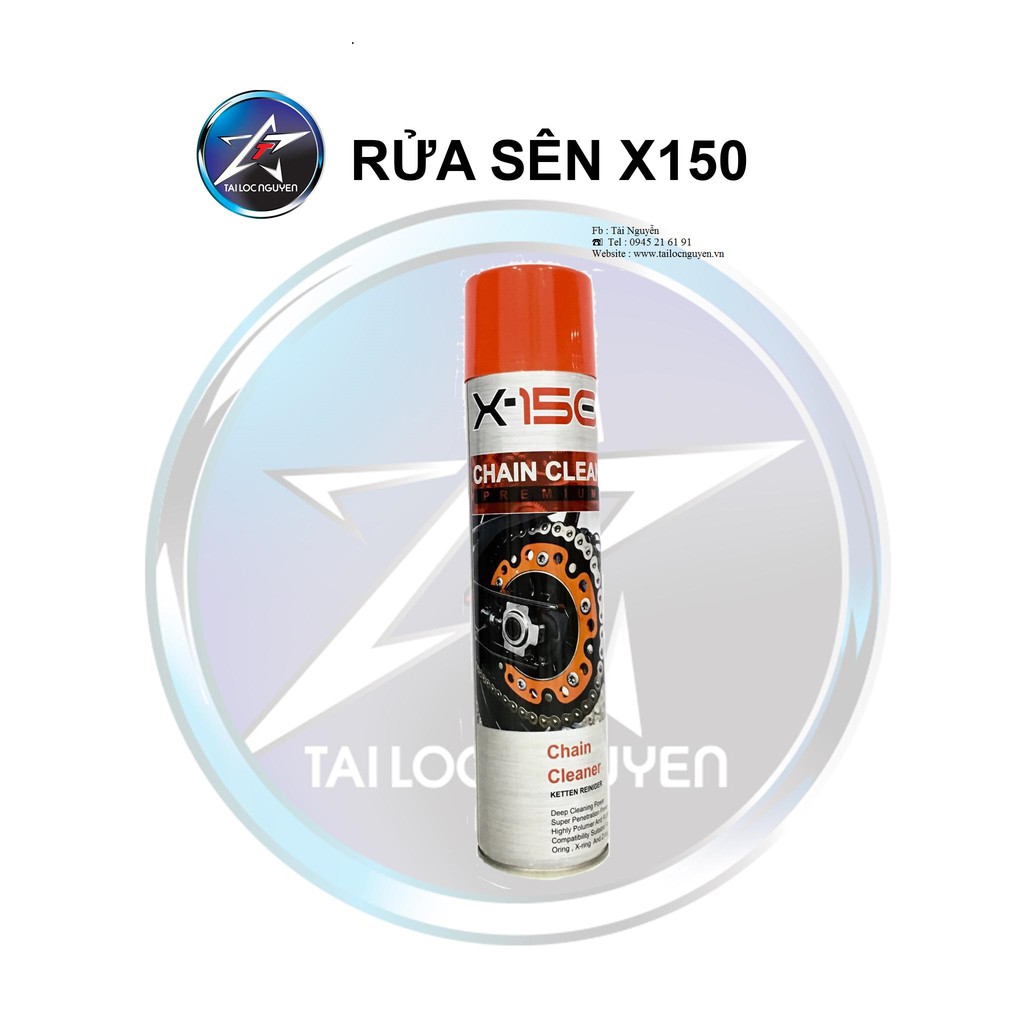 1. Xịt đều dung dịch X-150 vào sên xích và chờ khoảng 3-5 phút để các chất bẩn, dầu mỡ bám lâu ngày trên sên dễ dàng tan dần ra.