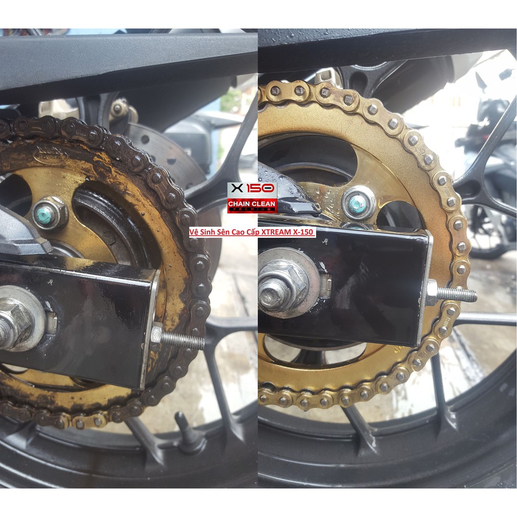 2.1. Cách 1: Sau đó chà sên xích với bàn chải 3D chuyên dụng(với cách rửa này sẽ giúp tiết kiệm dung dịch X-150, các bạn có thể tự vệ sinh sên tại nhà với vòi nước bình thường mà không cần mang xe ra tiệm rửa xe) chà xong lấy vòi nước xịt lại, sên sẽ sạch bóng.
